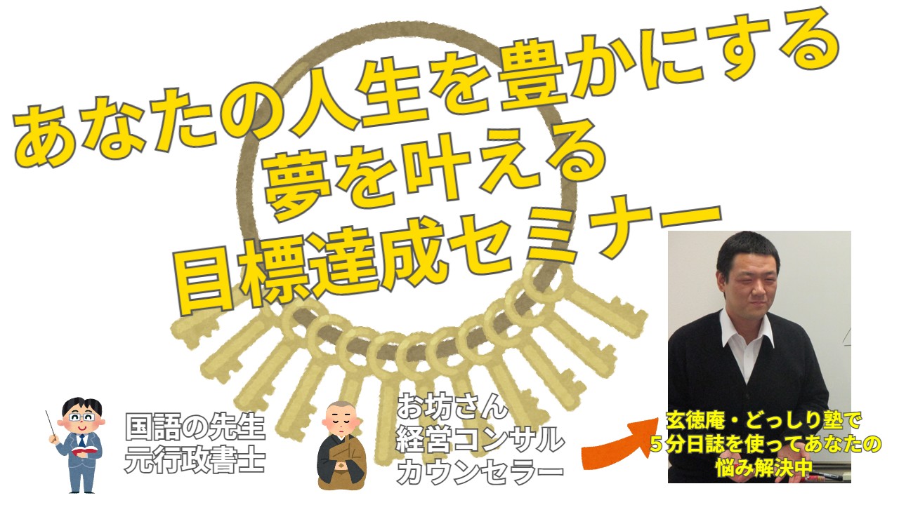 これを忘れてしまうと、あなたは目の前の利益ばかりを追う人になってしまいます。だから玄徳庵の目標達成セミナーでは、毎回ここから質問をします。