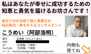こんにちは。玄徳庵代表の目標達成コンサルタント!のこうめいと申します。玄徳庵のコンサルは『5分日誌であなたの夢をかなえる目標達成コンサル』と呼んでいます。これはコンサルの独りよがりのサポートではなく、あなたの本当の夢や目標を明確化・言語化し...
